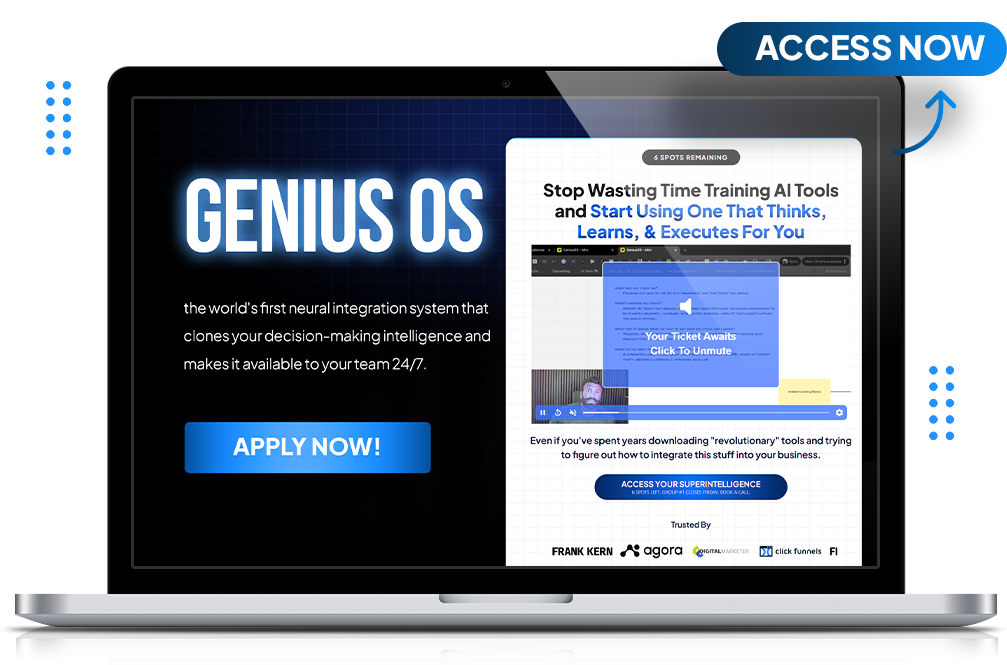 GeniusOS is the world's first neural integration system that clones your decision-making intelligence and makes it available to your team 24/7. While competitors struggle with generic AI that strips away context, your organization operates with your level of intelligence across every decision.